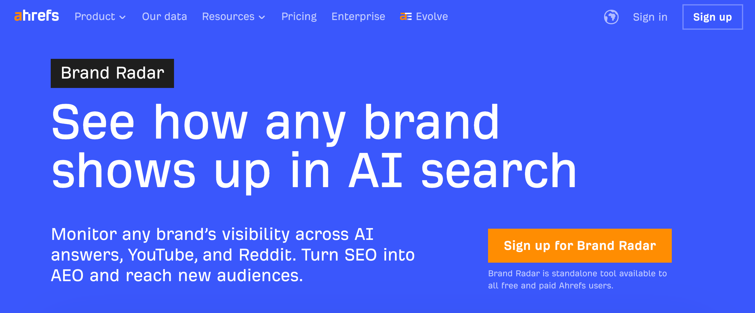 Ahrefs Brand Radar — Best for Backlink-First SEO Teams