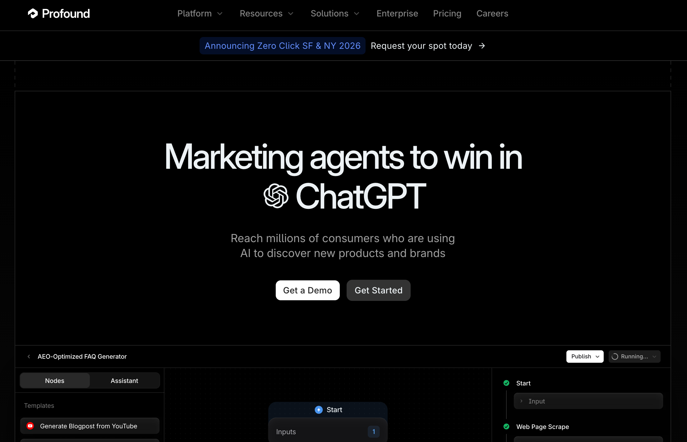 Profound's AI agent layer, launched in 2026, marks a genuine step forward for enterprise users. For large organizations that need to understand exactly where every AI mention comes from and what's driving it, no tool goes deeper.