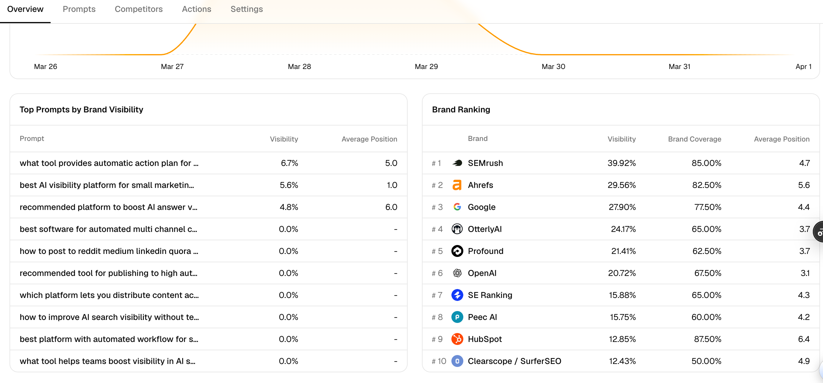 A word on tool selection philosophy: most platforms tell you whether you're visible. Fewer tell you why you're not. Even fewer help you actually do something about it with actionable content and distribution workflows. That gap — from insight to execution — is the most underserved problem in the category.