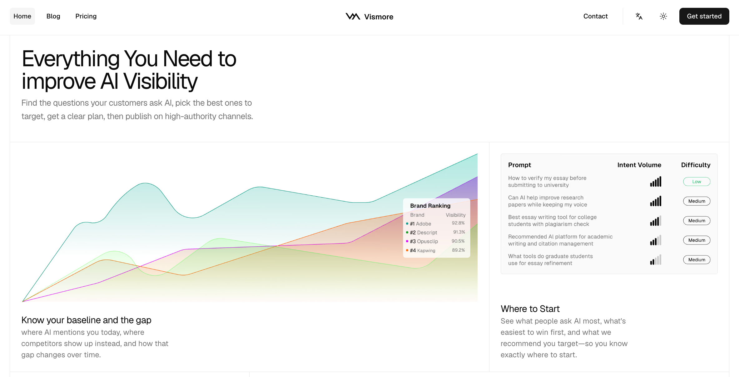 Vismore ($99–$399/mo) — Monitoring + strategy + one-click publishing to high-authority channels. Best for teams that need to act, not just track.